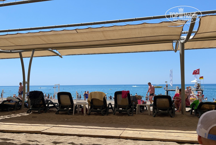 Дают мороженое, есть бар со смузи, еда у пляжа есть, большой бассейн, горки. Купили в отеле постельное белье, полотенца, дешевле намного чем на базарах.