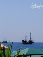 В ресторане отеля огромная веранда и столики на балкончиках. В жару очень приятно обедать и ужинать.