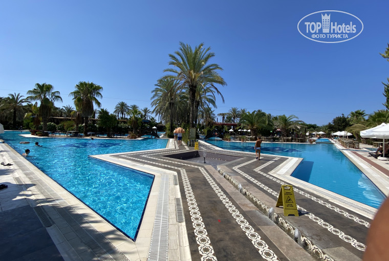 Отдыхала в этом отеле впервые. До этого много лет посещали Глорию гольф, тоже 5 звёзд, но там они не для словца значатся. Разместили нас в день прилёта в номере у лестницы, звукоизоляция никакая, поэтому все, кто шёл на завтрак по лестнице, приходили почти возле кровати :( а ещё шлепая по плитке сланцами. Но апофеоз был в том, что укладывая вечером ребёнка в 10вечера мы столкнулись с тем, что центральное освещение номера не гаснет. До часу ночи мне обещали электрика каждые 30мин, а потом предложили и вовсе вынуть карточку электричества и спать получается без кондиционера в том числе… ну и в туалет на ощупь видимо. Утром наш туроператор помог решить конфликт и нас переселили в другое крыло и даже с видом на море, а не грустный сад. Номер был убран плохо, клоки волос лежали дня два, пока румсервис не пришлось ткнуть носом. Полотенца не меняли, но при этом они странным образом исчезали, то для ног, то одно маленькое. Геля и шампуня нет, мыло в дозаторе только. Бар за 10 дней пополнили один раз. Воду брали из бара. Кстати в баре работает очень клиентоориентированный бармен Исмаил, готовый приготовить приемлимые коктейли по пожеланию клиента, а не химозные коктейли… В столовых убирают очень грустно, тк иногда что-то проливается или падает с тарелок, а убирается это не оперативно, то велик шанс растянутся и как минимум упасть, поэтому всегда!!! Нужно смотреть под ноги. Еда чаще всего однообразная, за грилем очереди невероятные, и за 10 дней мясо мы на ужин съели один раз. В какие-то дни происходят показательные выступления «борьбы с ковидом» и выставляют в зал персонал на раздачу, от этого очередь возникает абсолютно за всем и образуется столпотворение. Затем весь персонал исчезает и все становится ок. Приборы чистые найти всегда проблема. Тарелки моют кстати очень не качественно, на обед вы точно можете обнаружить, на какой из тарелок если утром яйца :((( Плюс отеля, что большой пляж и бассейнов много и каждый найдёт себе по душе шезлонг. Вход в море немного опасен, особенно если волны. Галька вначале и далее толи неровные плиты толи булыжники покрытые тиной, тапочки от такого не сильно спасают тк там не остро а просто сильно не ровно и можно ударить ноги.