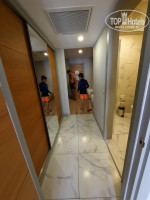 По поводу территории. Её нет. Она вся под бассы и горки аквапарка ушла. Гулять вечером можно только по неосвещенной дорожке к пляжу (вдоль трассы, такое себе удовольствие). У соседних отелей трассу закрывают зелёные насаждения, у Калидо выжженая солнцем жухлая трава, мусор, который кидают из проезжающих машин. Убирать особо не спешат.