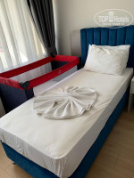 Отдыхали с семьей в конце сентября-октябре 2021 года . От аэропорта Анталии недалеко, ехали -час с небольшим. Наш отель был в числе первых , в которые развозили туристов, что конечно порадовало. Нас высадили - вторыми и забирали в аэропорт последними. Приехали мы в отель - поздно в 20.00, надели браслеты и отправили на ужин. После ужина нас окружили вниманием и заботой менеджеры отеля-по работе с гостями-Ersan и менеждер ресепшена-к сожалению,забыла его имя. Заранее писала им на сайт, попросила поставить детскую кроватку малышу-11 месяцев, так они не только ее поставили в номер семьи дочери, но так же поставили ее еще и мне в номер ,за что огромное спасибо. Помогли отнести чемоданы , вообще- всячески- во время одыха периодически подходили и спрашивали-как отдыхается.Сотрудники очень внимательны и хорошо общаются с детьми, улыбаются и разговаривают , допустим,видели, что нам нужна помощь в виде переноса коляски с малышом через ступеньки,сразу,не спрашивая,помогали.Огромная им благодарность .Заселили нас во второй корпус , номера были -наши с дочерью- на одном этаже-на 3-ем,так что было очень удобно ходить к друг другу,номера оказались прекрасными,телевизор-плазма,удобные кровати с ортопедическими матрасами,вся сантехника работала исправно.Проблем с кондиционером не было. Уборка и замена полотенец проводилась каждый день, пополнялись комплекты шампуней и кондиционеров. В номере есть чайник,холодильник,бесплатный сейф. В номерах ждал нас комплемент от отеля- в виде бутылки шампанского и фруктов,очень приятно. Сначала напрягло то,что с улицы раздавалась громкая музыка- анимация, но потом,узнав,что все это заканчивается в районе 23-00,успокоились и прекрасно спали ночью без кондиционера,с открытой дверью на балкон.До магазинчиков - минут 10 пешком, до пляжа три-четыре минуты пешком. Пляж песчаный с шезлонгами и зонтиками (бесплатно), полотенца выдают бесплатно по карточкам. .Море немного мутноватое при заходе ,внутри в глубине- чистое. Входить нужно аккуратно, дно не везде песчаное, встречаются плиты и камни, для меня не критично. Напротив пляжа - кафе от отеля с напитками, водой, с 12 часов фаст-фуд -картошка фри,наггетцы. Рядом стоит прокат гидроциклов, бананов,парашютов и прочих развлечений.Места на пляже-хватало бы всем, если бы не «супер - умные» туристы, которые в 7 утра занимают лежаки, и потом лежаки целый день загорают с полотенцами без их хозяев( .По набережной до старого Сиде можно дойти минут за 50-60.Во время нашего пребывания в отеле был фестиваль еды,сотрудники устроили праздник,вынесли на улицы столы и накрыли их бесчисленным количеством угощений .Турецкая ночь- раз в неделю, торговцы приезжают, можно подарочки набрать. На входе в ресторан измеряют температуру,лежат маски,стоит антисептик.Питание. Столовые приборы в индивидуальных пакетах.Всегда можно найти что- то по своему вкусу. Два вида супов,овощи свежие и тушёные, и на гриле. Обед и ужин всегда готовят гриль (мясо, рыба,курица) .Из -за короны накладывают сотудники отеля ,поэтому бывают очереди,но не критично,наибольшая очередь бывает ,где свежие овощи,салаты,оливки-то есть народ на правильном питании),а это радует.Потом мы приспособились-сразу брали салаты на всех членов семьи. Официанты-как пчелки,трудятся,не покладая рук-стараются убрать быстро,освободив столик другим людям. Фруктов дав