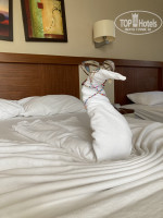 Здравствуйте! Присоединюсь ко всем положительным отзывам. Даже добавить особо нечего. Приехали под утро - заселили в течение 20 минут, предложив фэмили рум за 100$ (на след день ценник упал до 50$, но нам уже было лень перебираться). Итак, получили номер 201 и 218 (номер для инвалидов-такой нам полагался). Номер 201 чистый, и с балкона и с окна виден небольшой кусочек моря. Со стороны окна круглосуточно тарахтел накопитель воды, нас это не смущало. Единственный минус - комары (вылетали из вытяжки в ванной комнате)! Обратились по этому поводу на ресепшн - пришли и пару раз обработали номер спреем. Не помогло. Так же ночью в ванной выползали малюсенькие милые таракашки))))) Еды, напитков вдоволь и на пляже и в отеле, все очень вкусно! Пляж чудесный - находились там с утра до вечера, персонал дружелюбный. Да внимания к немцам больше и мне понятно почему: в день отъезда они благодарят понравившихся официантов $€. Анимация: волейбол, дартс, боча, через день живая музыка у бассейна. В соседней 5* повеселее - можно ходить туда на дневную и вечернюю анимацию. Отель рекомендую!