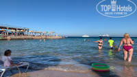 Вход в море каменный, можно поранить ноги или купить тапки как мы и сделали, идти несколько метров а затем мы попадаем в лягушатник, глубина по пояс во время отлива, во время прилива по грудь, дальше плавать нельзя! Так же есть пирс откуда можно прыгать и пантон с кораллами