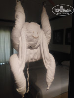 ПРО НОМЕР 2102: это первый этаж второго корпуса, с частичным видом на море и внутреннюю территорию отеля. Между корпусами 1 и 2 есть бассейн для взрослых 16+ с зоной джакузи, лобби-баром и пунктом выдачи полотенец. Обстановка в номере обычная: шкаф, сейф, холодильник (фанта , кола. пополнялась раз в 4 дня, вода постоянно), чайник с чайным набором, весы напольные (можно взвешивать багаж), махровые халаты, две большие отдельные кровати, кондиционер, есть душевая кабина и санузел. Про телевизор: всего каналов 100-120, из них 8 русских каналов, местные и музыкальные каналы (прикольно смотреть передачи на Украинском языке). Все что было в номере-работало исправно, даже несколько раз приходили электрики и сантехники, интересовались об имеющихся неисправностях! У друзей в 2105 номере чинили кондиционер и замок в раздвижной двери на террасу. Специалисты приходили по первому обращению. Уборку в номере проводили ежедневно и в то время. когда мы были на пляже, из полотенец делали лебедей, обезьянку, слона.