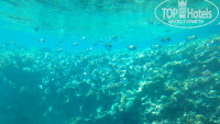 К МОРЮ идти под горку минут 5-7, хотя через каждые 15 минут ходит электробус. У отеля есть свой пляж с лежаками и зонтами. Берег из крупного песка, вход в море пологий. Прибрежное мелководье из камней и кораллов. метров через 50-60 резкий обрыв глубиной около 20 метров! Для плавания и ныряния нужно пройти по понтону (металлический корпус с деревянным настилом, на волне не качает). И вот тут вы увидите красоту Красного моря-кораллы и большое разнообразие красивых рыб. Ради этого и стоит ехать в Египет!