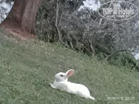 Территория достаточно большая, вечером можно чуть прогуляться. Будьте готовы к спускам и подъемам)). Если пройти через парковку, есть небольшая ферма с животными и огород. По территории бегают белки и кролик. Такой "эко-отель".