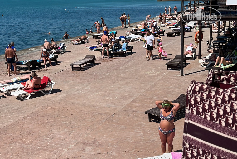 Повелись на низкую цену и хорошие отзывы ! Так вот бесплатный сыр бывает только в мышеловке! Море далеко , пляж это бетонный Пирс …. Вход в воду по скользкой лестнице…Питание очень низкого качества, очереди , ассортимента практически нет. Вино и настойки тоже оставляют желать лучшего. Для детей вообще сложно что то подобрать вкусного поесть . Было реально не вкусно …Персоналу абсолютно все равно на пожелания и рекомендации. Бассейн холодный ( хотя подогреваемый ). Хотели уехать сразу , но по их правилам за сутки у нас бы удержали и возврат был бы в течении 10 дней , а свободных денежных средств было не достаточно. Номера очень маленькие , вентиляции в душевых нет .