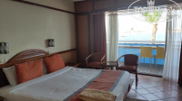 Номер 221, второй этаж, хороший вид на море в разные стороны с балкона. В номере чисто и приятно, всё работает, кровать кинг 2х2. Ежедневная качественная уборка (большой плюс), смена полотенец, заправка кровати, мыльнорыльные принадлежности и 0.5 воды на человека.