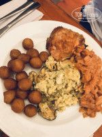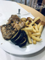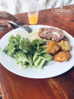 Еда. Все было вкусно. Большой выбор блюд, салатов, пирожных и фруктов. Мясо, рыба, гарниры не повторялись. Спасибо поварам. Очередей никогда не было, всегда можно было найти свободный стол внутри ресторанчика или на улице.