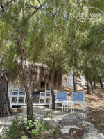САМ ПЛЯЖ. Огороженный волнорезом, вода теплая, можно сказать стоячая, зеленоватого цвета, как по мне, так лучше купаться на главном пляже (о нем чуть позже). Если у Вас дети маленькие, то данный пляж подойдет идеально. Лежаки на травке, много растительности, есть приватные зоны и кабаны - все очень красиво) Еда и напитки внимание, за доп плату, поэтому еще раз, если хотите на обед попасть уезжаем в 12:30. Место спокойное и уютное в целом.
