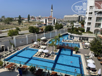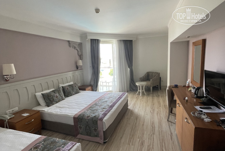 При заселении дали 10 долларов и мед, заселили сразу( в 11, не ждали до 14) в номер с одной двуспальной и одной односпальной кроватями. Вид на бассейн и улицу, мечеть. Балконная дверь хорошо блокирует шум, нам бассейн не мешал. Мечеть тоже, редко было слышно. Кондиционер работал хорошо, в номере было прохладно. Чисто, просторно. Полотенца меняли, убирались. В минибаре пепси, фанта, вода. Чайник, кофе, чай. В ванной комнате что-то типа геля для душа, отдельно флакончиков шампунь/гель нет.
