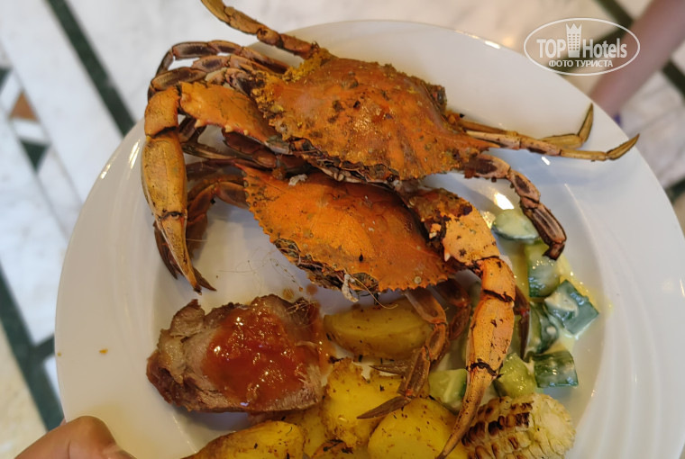 Готовят в отеле вкусно. Этому мы были очень рады. Нельзя сказать, что большое разнообразие, но в целом всегда есть что-то новое, можно найти еду на любой вкус. Два раза были даже крабы. Завтрак очень слабый - сосиски, колбаса, сыр на вкус не съедобные, но много выпечки вкусной, сыр фета очень крутой, готовят омлет с добавками на выбор. Обед и ужин намного лучше, довольно разнообразные. Завтраком немного разочаровалась, но обед и ужин все спасли. Десерты всегда были великолепные. Кофе лучше пить в лобби. Там его делают в кофемашине. В главном ресторане он растворимый, на вкус ужасный. Попробовала один раз, больше не рискнула. Соки порошковые, но в целом сойдет. В общем, нам питание понравилось. Без изысков, но вкусно. В Аля карт рестораны не удалось попасть, т к поздно пришли бронировать. Лучше бронировать сразу при заезде. Но по отзывам других отдыхающих мы не пожалели. Наливают напитки также в пластиковые стаканчики ( в ресторане, Карл ), по еде то, что бывает на обедах и ужинах.
