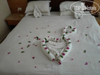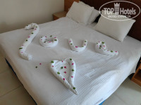 Не могу сказать, что это прям плюс отеля, но по сравнению с другими пунктами я все же отнесу ее к плюсам. Убираются посредственно, просто протирают полы и меняют полотенца. Мы всегда оставляли по доллару и нам каждый раз оставляли шедевры из полотенец на кровати. Было очень приятно. Но тем не менее, сантехника практически не моется, гели, шампуни и т д не пополнятюся( Номер у нас был во 2 корпусе на 3 этаже. Как мы поняли это новые номера. У нас был плазменный телевизор, относительно свежая ванная комната (хотя кран в раковине думала отвалится), мебель не новая, но довольно свежая. Единственное, шкаф для одежды был очень старым и постоянно открывался. В номере есть бесплатный сейф. В ванной комнате фен, но старенький слабоватый. Кондиционер работал день и ночь исправно, без перебоев. Ночью даже его делали потеплее, т к было холодно. Но днем это было спасение.
