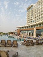 Добрый день! Вылетали мы из Новосибирска по расписанию без задержек, соответственно прилетели тоже во время. Дорога с аэропорта Дубая составила примерно 1 час 20 минут (ехали на маленьком автобусе принадлежащем отелю с прицепов в котором ехал наш багаж). Тут же прошли все необходимые для заселения процедуры, одели браслеты и отправили на обед так как время уже было 14-30 при этом сказали что номер почти готов. Мы прошли на обед и не торопясь по обедали, после вернувшись на ресепшен нам уже сказали, что заселение будет к 16-00 не раньше, реально мы уставшие с дороги сумки с купальниками у нас забрали сказав, что все принесут в номер то есть сидите в холле пока все будет готова. Примерно к 16-00 когда мне сказали что еще не готов я начала просить наши чемоданы, чтобы хоть переодеться и пойти на море. На что мне ответили пока не пройдете в номер не чего вернуть не можем, в общем уговорами нас заселили в 16-10. За всю мою практику путешественника - это самое долгое ожидание ((((. Номер нам дали маленький с большой кроватью и софой для 4 человек очень мало места, но это не сильно нас расстроило, за то с большим панорамным балконом с трех сторон море, очень шикарный вид просто здорово!!! Про питание одно и тоже хотя есть из чего выбрать, нарезка овощей и фруктов это вообще трешь как попало даже в тарелку накладывать не хотелось, овощи и фрукты безвкусные, выпечка не плохая но в такую жару и не хотелось особо. Напитки как писали выше хорошие и есть из чего выбрать, алкогольные коктейли попробовали почти все. В бассейн ходили два раза только ради детей, все остальное время проводили на море. Играли в волейбол и купались в море, загорать не хотелось в такую жару по этому все время просто проводили в воде, температура воздуха достигала +47, а воды +38. В этот период очень жарко. Хотелось еще сказать про море, это закрытая искусственная бухта волн нет совсем, но и запаха болота как кто-то писал в отзыве тоже нет, но есть БООООООльшой минус дно затягивает тиной и когда отливы просто не комфортно ходить, даже противно. Уборка в номере это просто видимость, полотенца постоянно не докладывали и не наполняли диспенсеры с шампунем и мылом, но мы вышли из положения угостили горничную Российскими вкусняшками и сразу все наладилось и чистота в номере и заполнение жидкостей, и даже лишние полотенца. Гулять там ходить не куда, днем очень жарко, вечером лучше остаться в отеле послушать музыку около бара, в отдельные дни даже были дискотеки, а в общем целом это отель для спокойного отдыха, кстати детей там очень много, это для тех кто думает, что тихое место ;-) Ехать или нет решать Вам, но если честно за такие деньги хотелось бы как то получше. Всем приятного отдыха и отличных впечатлений!