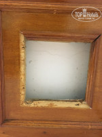 там стены целые. И целые в ванной вешалки. Согласилась. Но потом - обнаружила, что дверь в санузел сгнила ( фото), выломанные плитки на декорации стен, отсутствует абажур в комнате. И как только закрыла дверь в номер - начал появляться запах подвальной сырости. Из кондиционера - также затхлый запах. В общем, спала с открытой дверью. Когда возвращалась с пляжа - сначала проветривала номер. По еде - стандарт, завтрак- скрембл, пирог с сыром, овощи, зелень, оливки, самые дешёвые кексы и хлопья, молоко, чай и кофе (как из помойного ведра). Ужин - один гарнир и либо курица, либо фарш, огурцы помидоры салатом, какие-то жуткие соленья, залитые майонезом ( не рискнула отведать).