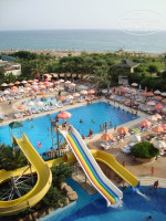 Номер, без доплат, дали с видом на море (горки и всю территорию отеля). Все вопросы по номеру решаются, у нас розетка (одна из двух) немного ходуном ходила, обратились на ресепшн, за пол часа все сделали (пока мы прогуливались, даже не заметили, когда это произошло). Имейте ввиду, заселение после 14.00 (нас заселили в 14.05), нам пришлось 1,5 часа погулять, за это время мы как раз пообедали и прогулялись до пляжа. Питание тоже порадовало, мой муж мясоед и всегда находил для себя что поесть. Много овощей. Из фруктов всегда были - виноград (2 вида), апельсины, грейпфрут, дыни, арбузы, сливы и яблоки. Иногда бананы и персики. Раз в день на улице с 16.30-17.30 бесплатное мороженое. Обычно небольшая очередь (но мы приходили минут через 15 после начала раздачи), и один раз было, за 15 минут до окончания, мороженое закончилось (мы проспали), так ребенку принесли минут через пять рожок (мы недалеко сели за столик), были приятно удивлены, т.к. уже не рассчитывали.