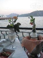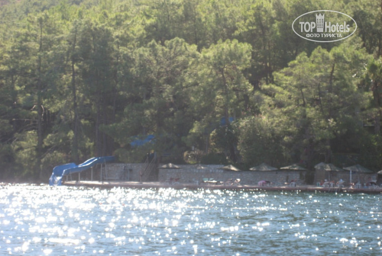 Море красивейшее, вода прозрачная, понтон не напрягает, т.к. у берега все-таки есть камни, а прожорливые рыбки!!! это что-то. Видела женщин с "обглоданными" ногами, меня почему то не кусали, не знаю, может не вкусная. А относительно рыб, это отдельная история, официанты из бара на пляже устраивают шоу, если остается пицца, бросают ее в воду прям целиком, что тут начинается, целые стаи рыб налетают и за считаные секунды сметают ее. Но, оговорюсь сразу, рыбалка в отеле запрещена!!! Ходили по дорожке-променаду и до Ичмелера, и до Мармариса. В Ичмелере, по-хорошему, делать нечего, но прогуляться можно, а до центра Мармариса идти далековато (имею в виду порт, крепость , рынок и пр.), для этой цели совершенно замечетельны маршрутки - 2 лиры и доехал, только у них есть час-пик, это где-то после ужина из Ичмелера, когда не в каждую сядешь, и часов с 22.00 до 23.00 из Мармариса. Экскурсии брали на улице. Были в Памуккале за 42 $ с носу. Не думаю, что чем-то хуже. Не люблю автобусные экскурсии, но повелась на то, что ближе, чем с Анталийского побережья, восьмое чудо света, скоро иссякнет и пр. бла-бла-бла... Завтрак с обедом включен, правда, сама экскурсия не очень понравилась, нечего там делать, сидеть за 18$ (это доплата) в бассейне Клеопатры, по таравертинам толком не походишь, они скользкие, колючие..да и народу превеликое множество. Здесь, конечно, личное дело каждого!