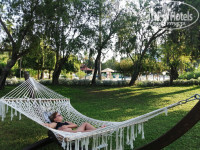 Территория огромная, зелёная, очень красивая! Всё ухожено, всё поливается, живность разная гуляет (гуси, куры, павлины, даже белый, кошки, черепаху видели), есть указатели и красивая подсветка. Под балконом у нас жила кошка с котятами, диковатые, но принесённые угощения ели с удовольствием) Много локаций для красивых фото, а закаты просто потрясающие! Можно пользоваться всей инфраструктурой двух отелей, расположенных здесь, и гулять, наслаждаясь пейзажами и ароматами😍🌺 Очень красивые виды с веранды Starlight. Вообще, территория и всё объекты продуманы, везде удобно добираться. По территории по расписанию ездит паровозик.