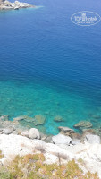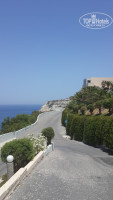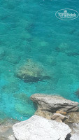 2. Пляж. Море. Отличное море, спокойное из-за отсутствия ветра т.к. находится в бухте. Лежаки бесплатные, хотя могут просочиться и местные, но их обелечивают по 1 евро. Это конечно минус т.к. есть опасения наличия посторонних людей с нехорошими намерениями. Вход в море сначала пологий, но затем резко сходит на нет. Песочек мелкий и приятный. С лежаками проблем нет, ну если только приходить к обеду. Т.к. спуск к морю достаточно крутой и дорога серпантином, курсирует шатл от главного корпуса до бара на пляже. Но при желание сбросить пару лишних, можно добираться и пешочком.