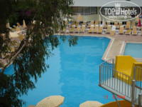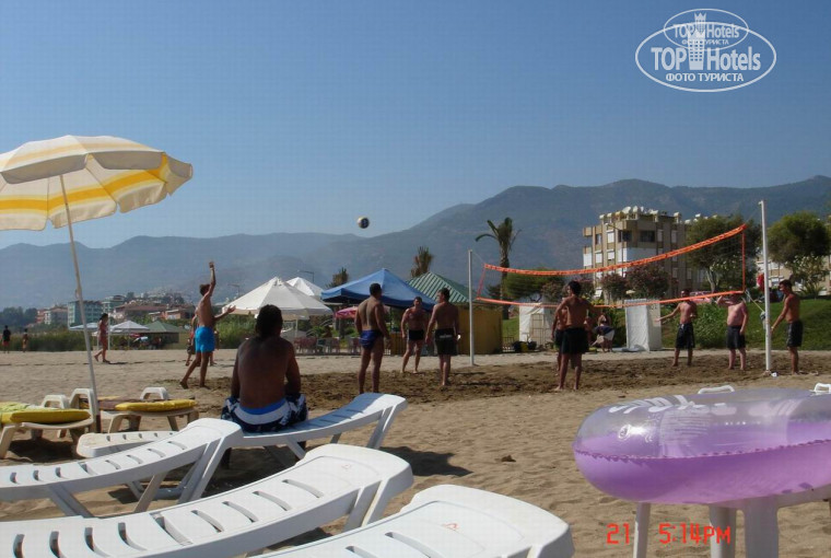 Еда хорошая, про анимацию писали много - не фонтан, территория - только та, что видно на фотографии и все... У бассейна занять лежаки с 8-30 было уже не реально. Пляж не порадовал, ни вход в море, ни обустройство, поделен он на 4 отеля. На фотографии обратите внимание на барную стойку и кабинки для переодевания, обтянутые целофаном. Кабинки, правда, с соседнего пляжа, но они идентичные, а на наших еще краской из балончика выведено "пляж №3".