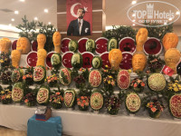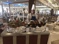 ПИТАНИЕ. Могу без зазрения совести сказать - разнообразное! Есть всегда и всё. На любой вкус. Да, изобилия креветок, крабов, раков и устриц ждать не стоит, но и без этого выбора полно. На завтрак оладьи, пончики, омлет могут приготовить персонально для человека, хлопья, йогурты, оливки, сырные и колбасные нарезки и т.д. Обед и ужин похожи по выбору. Но ужин богаче на выбор блюд. Вкуснейшие супы. Из мяса - курица, индейка, говядина, баранина, ягнёнок, печень. Рыба - дорадо, скумбрия, форель речная, стейки красной рыбы, тунец. Всевозможные салаты. Почти всегда в салатах есть салат с морепродуктами, креветками и кальмарами, отдельно с мидиями. Масса выбора тушеных, жареных и отварных овощей, рис, плов, пюре, лапша. Вкуснейшие и разнообразные десерты. Вкусные фрукты - сливы, нектарины, виноград, яблоки, арбузы очень сладкие дыни и персики. В обед можно поесть на фуд-корте гамбургеры, шаурму, картошку фри, пиццу, пекут лепёшки гезлиме.