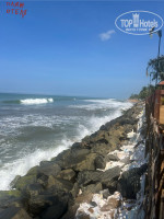 Не верьте отзывам старше года! Пляжа у отеля и рядом стоящего Танжерина нет, от слова совсем. Его за несколько лет смыли дикие волны, грохочущие постоянно. Отель обустроил небольшой пяточек с 6ю лежаками и парой зонтов недалеко от отеля. Но дойти до него целый квест. По скользкой, обваливающейся тропе, надо успеть пробежать в перерывах между накатами волн. А они там оч приличные. Еще сильное карстовое течение. С детьми купаться очень опасно! Рядом есть пара замызганных кафешек, а ценник как в отеле.