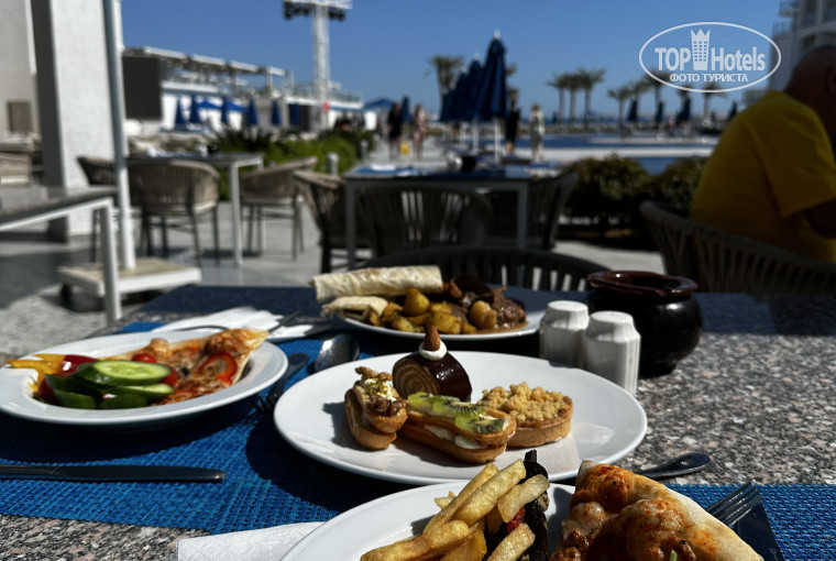 Большой выбор еды, на завтраке вкусные булочки особенно круассаны, на обеде креветки были очень вкусные.