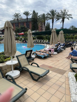 На каждом пляже работает свой сотрудник пляжа, в прошлом году на пляже отеля Ресорт их вообще было двое: Ферхат и Али. Всем всегда помогали и поддерживали чистоту пляжа."В алякарт попасть не удалось , пытались записываться с первого дня!..." Очень странно! Мы каждый сезон посещали два алакарта, бронирование элементарно. Плюс к этому еще и бесплатное приложение Pegasos несколько лет назад сделали, видел как дети из разных стран с удовольствием пользовались этим приложением."А ну и самое главное то чего еще ни где не встречала!!! Это нет перекусов между завтраком, обедом и ужином- только мороженное! Проспал завтрак - жди обед до часу🙈Бегать по расписанию постоянно....." Ну а это уже просто смешно! Поздний завтра заканчивается в 10:30. Умудриться проспать завтрак, который до 10:30? Серьезно? Обед по расписанию начинается с 12:30, но еще до этого с 12:00 и до 16:00 работает дневной кафетерий на терассе главного ресторана. Там зона фудкрода: всевозможные грили, пиццы, бургеры, пиде, картофель фри и т.д. Мы иногда с пляжа туда приходили на быстрый перекус. И не только мы, всегда на терассе были гости отеля в это время. "Так же и бары! Коктейли и покрепче только в баре у амфитеатра и в отеле! И то в определенные часы" Коктейли готовят в лобби-баре, в променад-баре и в баре возле амфитеатра в любое время их работы, а не в отдельные часы. В пляжных барах крепкого алкоголя нет, никому не нужно, чтобы гость отеля накидался алкоголем и утонул! Видео еды из ресторана https://www.youtube.com/watch?v=XfAlIE3SLkc