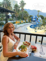 Отличный отель, полностью соответствует описанию на сайте! Я приехала утром и была сразу же заселена в 9.00, без доплат, что конечно подняло настроение. Девочки администраторы замечательные, дружелюбные, приветливые, доброжелательные, все рассказали, показали, всегда готовы были помочь и откликнутся на любую просьбу, все говорят на русском, что очень для меня было удобно. Wi-Fi платный, но стоит не дорого и ловит везде, даже на пляже. Уютный номер, все необходимое есть, кровать отличная, удобная, уборка каждый день, полотенца меняли каждый день. До пляжа близко 5 мин идти если медленно, наш пляж был самым лучшим, я обошла все пляжи рядом, широкий, пологий вход в море, места полно, лежаков на всех хватало, чистые матрасы, а море такое красивое дух захватывает. Природа вокруг просто волшебная, очень красиво, горы изумительные, место сказка! А если еще возьмете номер с балконом на 5 этаже, вы будете смотреть закат, горы, красота! Бар на пляже просто спасал, в такую жару да пива холодненького, мороженное выдают по часам. Выбор еды не большой, но все вкусное, я наедалась сполна, очень понравилась мясо и рыба на гриле. Есть спа-центр, который я посетила в первый же день, намыли, пилинг, маски, массаж все по полной программе, после такого расслабления сразу усталость с дороги как рукой сняло. Аниматоры Бега и Фара не давали скучать ни днем ни ночью, днем дартс, волейбол, йога, теннис, вечером концерты, караоке, танцы, ночью клуб. Я приехала на свое день рождение, новые подруги Анна и Настя сделали мой день волшебным и запоминающим, спасибо им!!! В отеле поздравили меня всем коллективом, включили для меня песню, принесли тортик, в номере ждали фрукты и бутылка вина, спасибо, было очень приятно такое заботливое внимание! Я ни секунды не думала и не чувствовала, что я одна😊 Этот отель прекрасный выбор и для семейного отдыха и чтоб найти новых друзей! Всем советую!!!