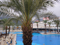 Искали с мужем крупный отель с интересной территорией, большим бассейном и нестарым номерным фондом. Выбор пал на данный отель из-за интересного вида главного корпуса. Общие впечатления от отеля отличные, отдых прошел хорошо и нескучно. На всей территории отеля следят за чистотой, огромное количество сотрудников обеспечивают порядок, все отзывчивые и веселые. По приезду очень хотели заселиться в главный корпус, но нам предоставили номер в новом здании на втором этаже с видом на бассейн. Попросили номер поменять - на ресепшен не отказали, предложили еще несколько вариантов, но выслушав плюсы нашего номера решили не переезжать и остаться в здании анекс. Номер оказался действительно более удобным в плане перемещения по территотии: это и близость к бассейну, и отсутствие необходимости спускаться на лифте, и собственная сплит система, отличный вид с балкона. Более того на эту сторону не попадает солнце в течение всего дня - утром оно встает с противоположной стороны, а к вечеру скрывается за горой. По номеру замечания лишь по неудобному матрасу.. Дополнительно просили поставить выпавший аэратор в кран и протереть фильтр кондиционера от пыли- в этот же день все исправили.
