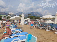До моря идти недолго, на собственном пляже есть снек бар(напитри, бургеры, арбуз), шезлонги, зонтики, навесы и собственный пирс. Пляж удобный при заходе, чистый, вода прозрачная, не мутная, есть охрана, спасатель, уборщик, много мусорок, душ с пресной водой, переодевалка. Каждый вечер все шезлонги стоят как по линеечке, полный порядок везде и во всем, убирают песок с дорожек и с места где моют ножки после пляжа. Есть песочница для деток. Периодически проверяют браслеты. Вечером на пляже включают прожектор, находиться там комфортно, не страшно купаться ночью. Туалет муниципальный, от этого не всегда чистый, идти до него минуту-две.