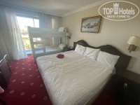 До середины октября еще приемлемо, но на фоне нормальных пятерок, конечно, так себе. После 15 октября закрыто половина баров/ресторанов на улице. В работающих урезано меню. По барам уже много просто нет, молочный коктейль детям в одном баре один вкус, в другом другой есть, по одному! Бутылку с сиропом они поставить не могут, точнее они стоят, но пустые. В мохито уже в основном льют непонятный тоник или вообще минералку, вкус ужасный. И все в таком духе. Если ездили в той же Ларе в дельфины империал/бигранд (которые тоже не прям идеал), Конкорд, то этот ну мягко говоря сильно не то, а после 15 октября совсем грустно. По номеру - комната более менее норм по состоянию, санузел на фото. Ванна с непонятными пятнами, выело эмаль и видимо уже давно. Столешница из искусственного камня со большими сколами. Из любопытства посмотрел как она закреплена - лежит на раковине и на небольших уголках прикупленных к стене, так что на большие нагрузки наверное не рассчитана). Анимации по сути нет, включают одни и теже мелодии каждый день вечером для детей и один мужик в обычной одежде, типа аниматор перед ними пляшет с видом что его это сильно достало. Никаких костюмов у него нет. Выглядит как будто пьяный турист вышел с детьми поплясать. Для взрослых тоже ничего нет, просто музыка. Персонал вроде бы знает русский, но как только им указал, что что-то не так, сразу язык не знают и вообще полный игнор, отворачиваются и переключаются на других. Ну это в лучшем случае, а то могут еще и пререкаться. Шумоизоляции никакой. Кондей полумертвый. Минибар ну совсем мини, банка чая 200 мл, кола 330 и вода. Больше ничего. В этом году ранее были в дельфин империал, там на всех и газировка и шоколадки, а тут все по минимуму, но и стоимость правда сильно разная тоже. Чтобы посидеть отдохнуть вечером - стой в бар за напитками 15-20 минут сам каждый раз. Официантов которые подходят и предлагают напитки и чипсы/орешки нет, как и самих чипсов. В основном ресторане на завтрак/обед/ужин тоже никакого обслуживания (не предлагают принести напитки), только тарелки забирают пустые ходят. После дикарем на нашем юге может и сойдет, но после нормальных пятерок в Турции - это не 5 звезд совсем. С Европой вообще сравнивать нечего. Минус - то что был бы он еще в Ларе, там есть куда выйти прогуляться, здесь надо ехать в Лару. Еще со второй недели нашего предварив в корпусе отключили 1 лифт, похоже до следующего сезона. Всего в пятиэтажном корпусе 2 Холла с 2 лифтами каждый. Как во втором не знаю, но в ближайшем к нам лифт остался один и то бывало что и его ненадолго отключали для ремонта. Водные горки работают якобы с 10-12 и с 14-16, но это не точно) то у них что то там сломалось, то ветер. В других отелях как-то таких проблем нет, и могут работать в более широком диапазоне времени. А тут было что детские не работают - замотали лентой, то наоборот в какой то день взрослые. Короче работают мало и то не на 100%.