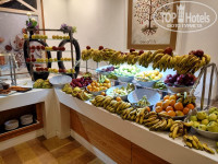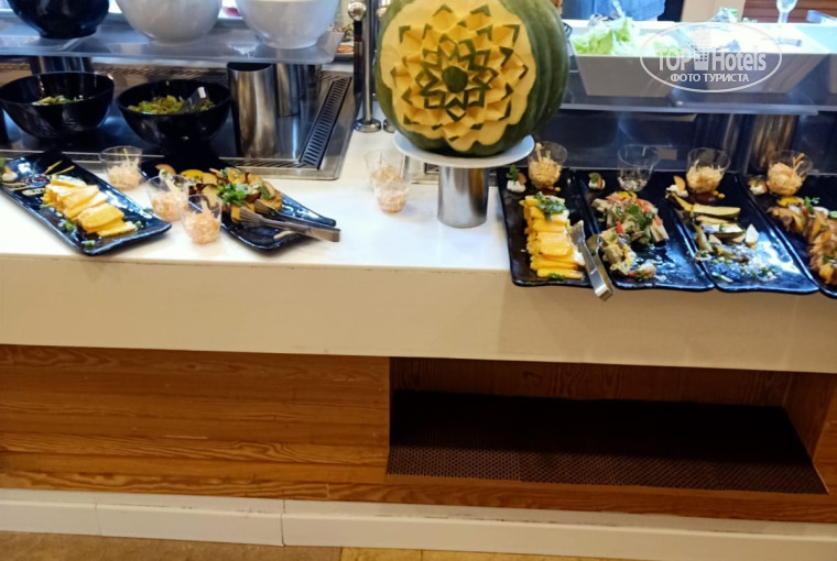 Большая территория, длинный променад, по которому можно прогуляться. Хороший сервис. приветливый персонал, на завтраке/обеде/ужине предлагают напитки по собственной инициативе, очень быстро убирают со столов, везде в ресторанах чисто, в номерах с уборкой тоже проблем нет. Еда разнообразная, на любой вкус, десертов миллион, особенно на ужинах (хочешь съесть чуть-чуть, а в итоге укатываешься оттуда колобком). Каждый день даже обычная рыба была приготовлена по-разному и не надоедала. Смузи и клубника на баре- это что-то волшебно вкусное , так как смузи делают при теме из свежих фруктов без добавления сахара и льда и это большой стакан (35$ за 15шт). Поселили нас в большой номер, где было довольно чисто и аккуратно, не сказать что свежайший ремонт, но нас всё вполне устроило. Анимации в отеле более чем достаточно, если учавствовать везде- точно не заскучаете! Бассейнов много, но только один с подогревом и там тусуется большая часть людей, что не совсем удобно, но не критично.