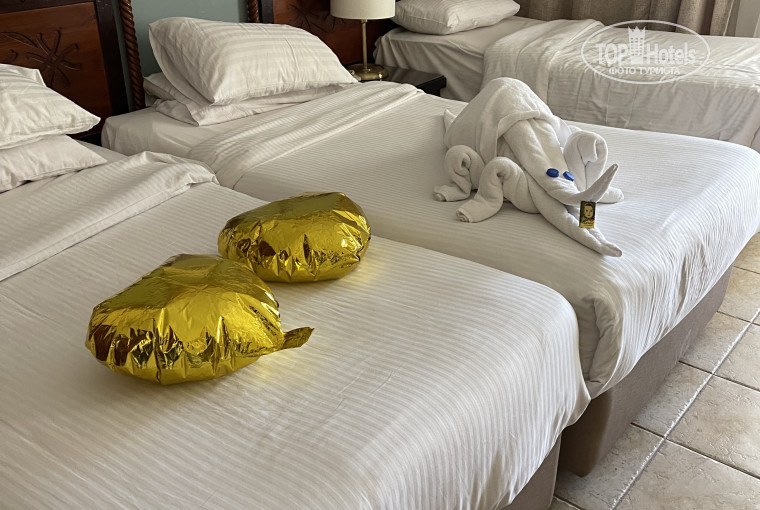 Просила тихий уютный номер и пожелание выполнили на все 100%. Заселили в номер с выходом на детский бассейн,так как сейчас не сезон- это место идеальной тишины,где не слышно анимацию и вечером можно посидеть на балконе. Сам номер в хорошем состоянии. Есть минибар и сейф.В ванной чисто, можно натянуть веревку и сушить вещи. Гель, шампунь, кондиционер, мыло и лосьон стоят в дозаторах и постоянно пополняются. Единственный минус, как и везде- это слышимость из коридора и соседних номеров.