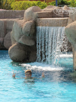 Бассеинов много 4 +джакузи.Интересно продуман дизайн.Есть водопады и горочка.Все соеденены между собой каналами.Я отметила что хлоркой почти не пахнет.