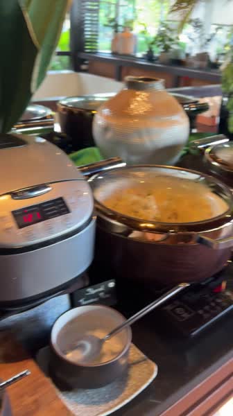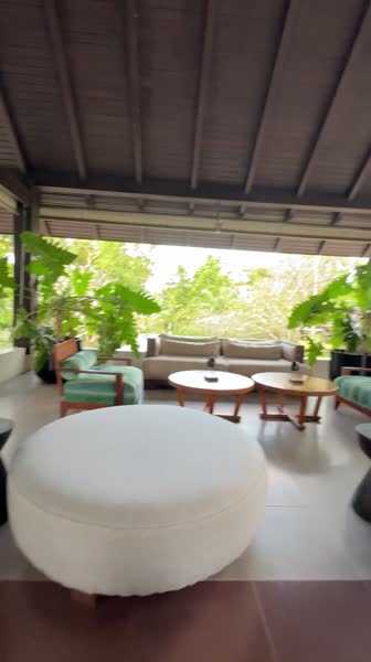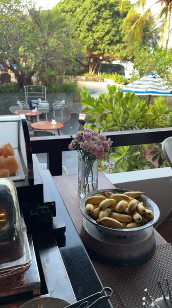 Территория отеля. От лобби до моря минут 5, по всей территории многоооо растительности, самой разной, очень живописно, на деревьях растет манго и дуриан (за дуриан в номере кстати штраф), на пальмах на берегу растут кокосы. Время от времени ездят гольфкары, могут подвезти. Всю территорию с утра до вечера убирают и поливают садовники, очень милые люди всегда здороваются и улыбаются. После вилл по мостику мы выходим к бассейну, купались в нем 2 раза всего, вода была как в ванне теплая, вокруг лежаки, из плюсов отеля - людей не много и не мало, всем есть место. Полотенца так же выдают рядом и недалеко туалет. Бассейн работает до 19:00. На самом пляже тоже лежаки с зонтиками и столиками, песок желтый но абсолютно чистый, вход в море шикарный, все таки собственный пляж это несомненно плюс без толп. Сбоку от бассейна расположен ресторан, в нем завтрак с 7 до 10 примерно, но никто не ругает если опоздали, при раннем выезде можно попросить упаковать завтрак с собой, или можно заказать в номер. По лестнице вниз в ресторане можно попасть в спорт зал, не ах, но там и не особо кто занимался. Есть кондиционеры вентиляторы, тренежеры (печально одна беговая) и стол с разными полотенцами и водичкой. Слева от бассейна есть спа, но цены конские 2500 бат за массаж (когда в городе оил за 400 бат/час)