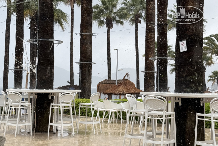 Мы сейчас находимся в отеле , второй день идет дождь , но мы совершенно не скучаем. Для гостей есть хамам, баня и крытый бассейн. Вечером открывается клуб 💃 современная музыка , прекрасная атмосфера. Русского контингента минимум , в основном , европейцы и немного турков. Удачное расположение, в самой середине набережной, гуляй - не хочу , в любую сторону. Ждём улучшения погоды с завтрашнего дня и будем гулять и загорать .