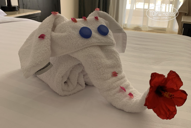 Номера с хорошим ремонтом и стильным дизайном. Мебель не совсем новая, но ничего не сломано, все чистое. Уборка ежедневно, из полотенец нам кделпли разные фигурки, сын всегда бежал в номер в ожидании нового животного!