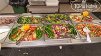 Удивил скудный выбор еды. На завтраке иной раз всего пара тарелок выпечки, такого в Турции я не видела ни в одном отеле. Обычно выпечки всякой разной море. Круассаны были только 1 раз. Свежевыжатый сок остался только апельсиновый. Фильтр-кофе бывал через раз. Мою любимую мушмулу давали раза 4, по-моему, потом она пропала. Из фруктов были яблоки, груши, бананы, айва, грейпфруты, апельсины, клубника, арбуз. Черешни не было, что опять же для меня удивительно. На обед один угол раздачи и один остров стояли пустыми и неосвещенными. Зато суп бывал всегда, даже на завтрак и на пляже. Удивило также то, что овощи в этом отеле готовить не умеют: кабачки, баклажаны, брюссельская капуста, цветная капуста, брокколи - все почти всегда было разварено в сопли. В аля-карт ходили турецкий - ни о чем. Выбор из 2 горячих, мы взяли шашлык - деревянный, лучше бы поели в основном ресторане. Был день морепродуктов - кальмары, креветки, раки, мидии. Тоже невкусно. Все, что не доели на ужине, на следующий день на столе закусок подается на обед. То же самое происходит со сладостями. Айрана в свободном доступе нет, надо просить на баре. Впервые такое вижу, во всех отелях, где была ранее, айран стоял так же как вода в холодильнике. За напитками в ресторане ходили сами, официанты не утруждают себя обслуживанием (ну кроме парочки тех, кто горит своей работой).