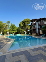 Территория — это просто сказка! Она большая, но не огромная. Складывается впечатление, что ты приехал в гости к природе и ее обитателям. Фигурки животных, живые ежики и белки, ухоженный ручей, который чистят ежедневно. Множество локальных небольших детских площадок, идеально подстриженный газон... а какой запах цветов! Все это сопровождается тихой спокойной музыкой, которая сопровождает тебя на пути через оборудованный арочный переход от ресепшена к бассейнам и главному зданию. Прекрасно продумано и реализовано! Также на территории, по пути на море, вы встретите речку. По ней периодически плавают лодки различных размеров. С них можно половить рыбу и крабов, которых вам потом приготовят на обед. Путь на море пролегает через деревянный разводной мост, который иногда разводят, чтобы пропустить большие лодки. Также на территории за аквапарком и футбольным полем находятся вольеры с животными. К ним раз в неделю водят детей из детского клуба, но и самостоятельно можно иногда сходить, посмотреть и угостить салатиком из столовой. На территории также имеются столы для пинг-понга, большое футбольное поле и несколько теннисных кортов. Ракетки и мячики берутся под роспись в будке у бассейна. Отдельно отмечу стабильный и быстрый Wi-Fi. Он работает даже на самом дальнем лежаке на море! Такого быстрого и качественного интернета в отелях я никогда не видел. Бывали временные сбои из-за увеличенной нагрузки на сеть, но за 10 минут все восстанавливалось и было такое раза 3 за весь отдых!