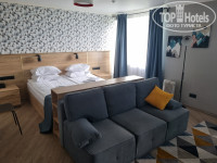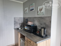 Мы бронировали номер с инфракрасной сауной. Сам номер располагается на 10 этаже с видом на залив. Есть 2 балкона. На одном балконе было 2 стула. Весь балкон и стулья были интенсивно покрыты пыльцой. Во время дождя весь балкон был залит водой. При заселении в номере были 2 халата и тапочки. В зоне кухни есть необходимые приборы, тарелки, кружки и стаканы, соль с перцем в солонке, открывашка, штопор. Есть чайник. Огорчило наличие просроченных пакетиков с кофе. Сроки годности у чая были в норме. Также было несколько пакетиков с сахаром. Был небольшой работающий холодильник, микроволновка. Также есть раковина и мусорное ведро под ней.
