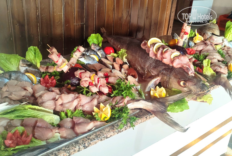 Питание хорошее, каждое утро был мёд в сотах, приятно. Мяса много и оно преобладает (рыбу не припоминаю в обычные дни), но пару раз были тематические ужины, где наоборот было изобилие рыбных блюд. Овощи разнообразные, фрукты не очень, но арбуз с дыней был всегда. Есть круглосуточный бар у бассейна, где всегда можно было перекусить пиццей, картошкой фри и салатиком. Коктейли тоже хорошие, вечером в барах бывает очередь, но минут 8-10 и вы свободны.