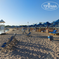 Собственный пляж достаточно большой. Напротив отеля пляж для туристов отеля DANA BEACH. Шезлонги деревянные, матрасы, столики, перегородки в хорошем состоянии. Песочек с утра грабастают граблями, мусор убирают регулярно. Можно заказать напитки у официантов или дойти до бара на пляже. Мороженное с 10ч. 4 вида хорошего качества в морозильном ларе.