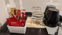 Нам на двоих каждый день приносили по 4 бутылочки воды. Пакетированный чай, кофе, сахар, сливки (всего по два) пополняются каждый день. Из косметических средств: есть ушные палочки, шапочки для душа, гель в дозаторе у мойки и гель и шампунь в дозаторах в душевой зоне.