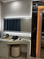 Отдыхали мы в августе с семьей, два номера было: на двоих и на троих. Категория номера стандарт и делюкс. Делюкс просто огромный: двуспальная кровать, односпальная и отдельный угловой диван с телевизором. Стандарт, точно не скажу, но какой-то улучшенный был, очень просторный, на двоих просто замечательно. Балконы в обоих номерах с видом на бассейн.
