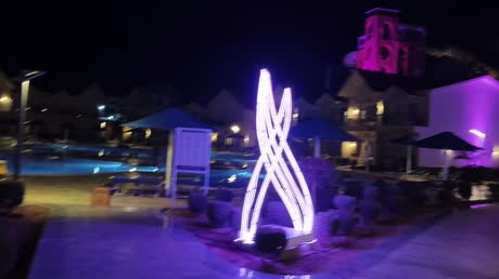 2️⃣ Как только мы зашли на территорию отеля (я в нём впервые, хотя живу в Хургаде и бывала в других отелях сети «Альбатрос»), стало ясно: заполненность высокая, но… это не просто отель! Это целый маленький город, почти Диснейленд! 🏰 Вечером отель преображается — множество красивых подсветок цветными лампочками создаёт по-настоящему магическую атмосферу! ✨