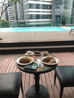 Ресторан находится на 6-м этаже, есть возможность приема пищи на свежем воздухе с видом на бассейн и небоскребы. Режим работы: 6:30-10:30. Завтраки стандартные: мясо, блюда из яиц, картофеля, макаронные изделия, каша, рис. Свежая выпечка. Помидоры, огурцы, зелень, салаты, сыры, колбасы, супы. Орехи. Чай, кофе, холодные соки. Из фруктов – ананас и арбуз. Часть блюд достаточно острые, так как основной контингент проживающих – индийцы. Сам ресторан вместительный, посадочных мест хватает в любое время. Обслуживание отличное, грязную посуду уносят моментально.