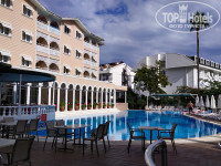 Территории у отеля нет. Собственно отель и бассейн. От проезжей части отель отделяет небольшой садик с цитрусовыми.