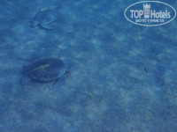 Теперь – главное. Ехал посмотреть разрекламированную бухту Абу Дабаб. Итог: впечатления противоречивые. Риф средний и по кораллам, и по «населению». Видел приличную мурену, скатов, тунцов, черепах, рифовых акул (мелкую около полуметра у пирса и приличную около полутора метров на выходе из бухты), рыбу-камень около метра у южного рифа. Кораллы, особенно на выходе из бухты, тихо умирают – вода теплая. Черепахи «пасутся» между рифами. Есть и те черепахи, которые кораллы грызут. Дюгоней не видел. И не только я. Знакомые из Германии тоже не видели. Хотя несколько лет назад их можно было встретить. Если поплавать – рекомендую бухту. С пирса в огражденной буйками зоне смотреть нечего. Я заплыл за буйки на внешний риф – спасатель очень громко ругался, типа нельзя. Но и там риф мало интересен. Или с аквалангом возможно что-то можно увидеть – приличная глубина.