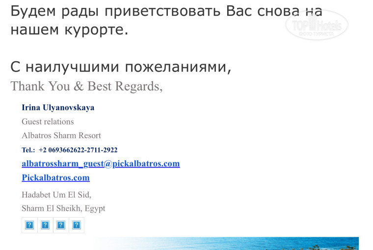 Рекомендательное письмо из Топ Хотел не работает, письмо на их электронную почту касаемо заселения-тоже не работает.